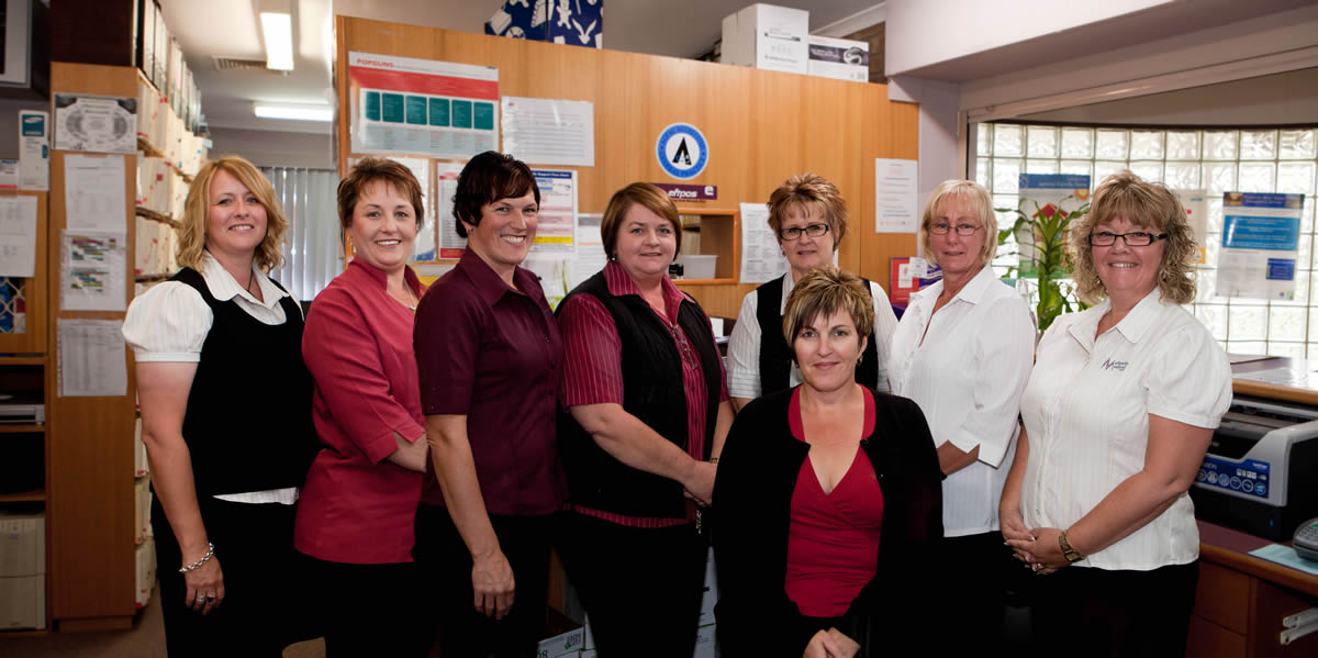 Leanne Lawrie, Sheree Loffler, Dianne Fulwood, Sharon Cabot, Christine Temple, Joanne Traeger, Nicole Sandy & Jodie Kemp perform the reception, filling, and front office aspects of the practice.